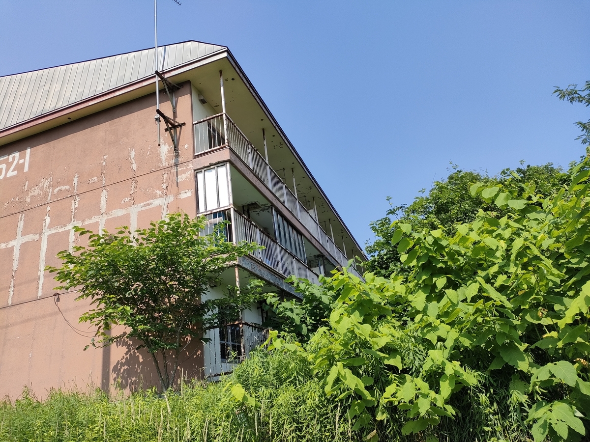 人が住んでいるかいないか分からない集合住宅。廃墟っぽくなっているのが、戸建てでなく集合住宅ってのも夕張の特徴だと思う。