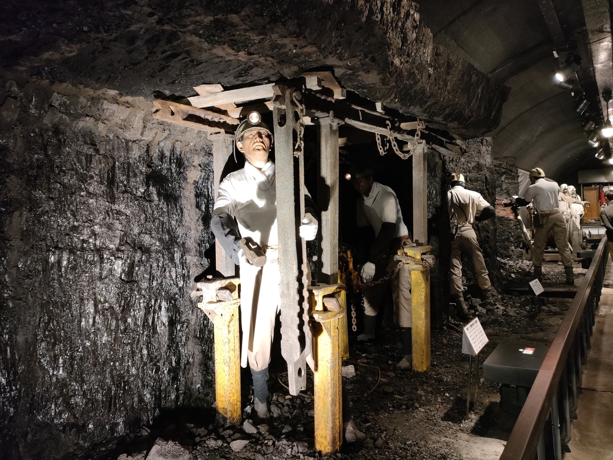 夕張炭鉱模擬坑道は2019年の火災で閉鎖されていたそうだが、2025年4月に再開。入口部分は本物だそう。
